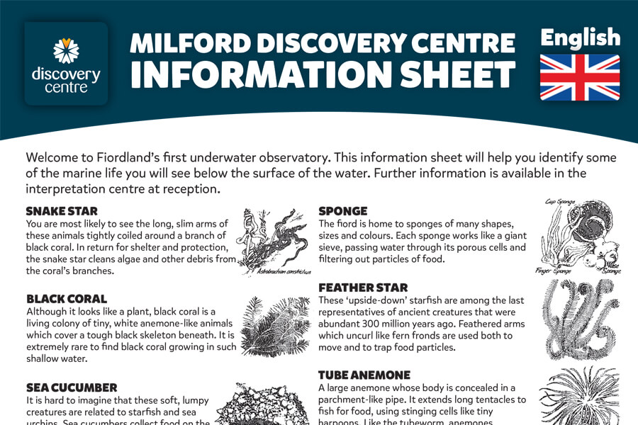 Milford Sound Underwater Observatory and Discovery Centre Info Sheet English